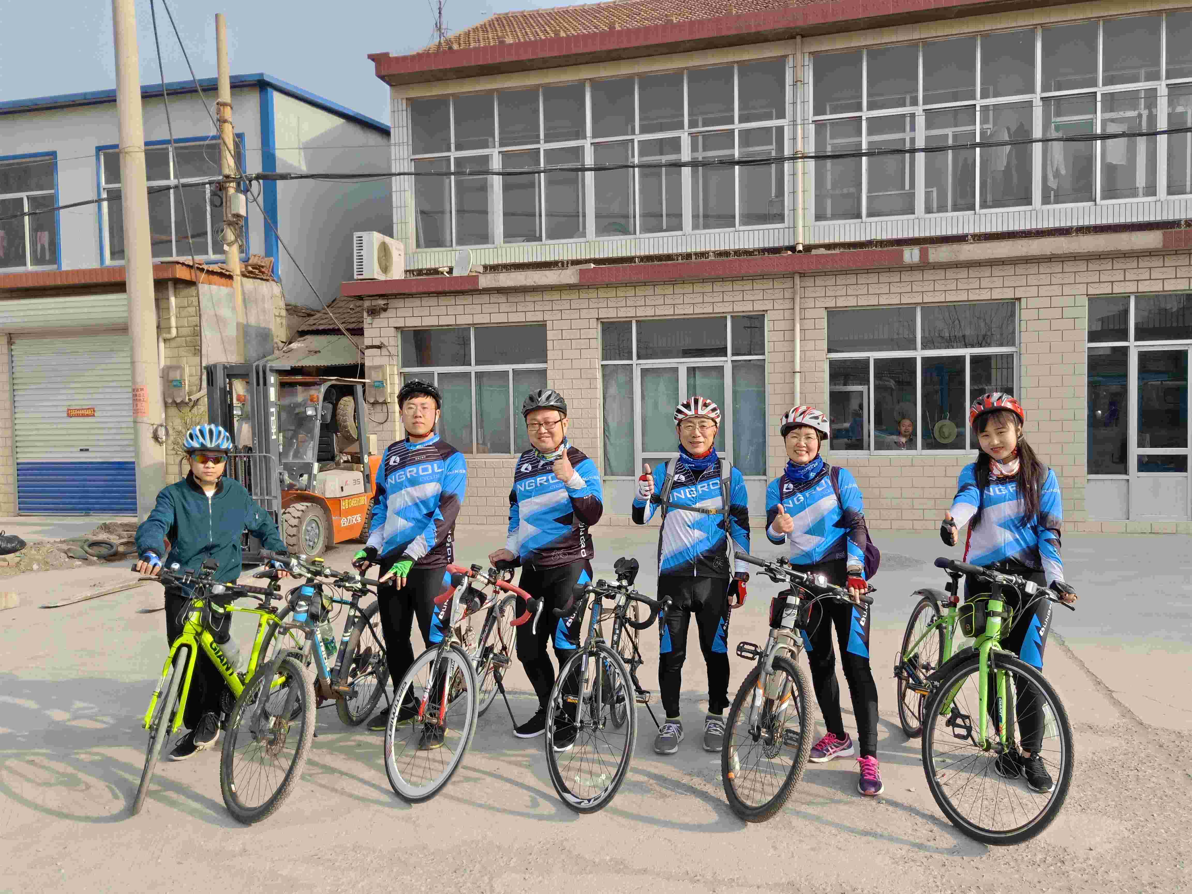圖為參與此次活動的公司騎行團(tuán)成員準(zhǔn)備出發(fā)。