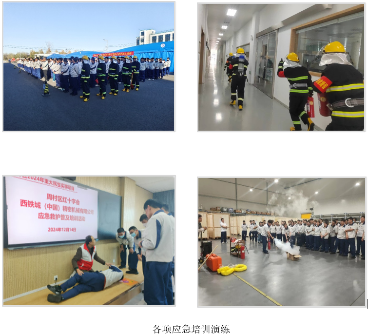 2024年度開展消防綜合逃生演練、車輛傷害專項應急演練、機械傷害現(xiàn)場處置方案演練、倉儲物體打擊現(xiàn)場處置方案演練、火災事故現(xiàn)場處置方案演練、檢維修中暑事故處置方案演練等,共計13次。